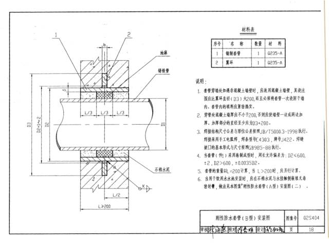 從02S404圖集可得知,a型剛性防水套管和b型剛性防水套管外形數(shù)據(jù)尺寸完全相同唯一不同的是穿過(guò)防水套管的管道,a型穿過(guò)的為鋼管,b型穿過(guò)的為鑄鐵管。所以說(shuō)ab型剛性防水套管在生產(chǎn)過(guò)程中沒(méi)有區(qū)別,可以放心使用。