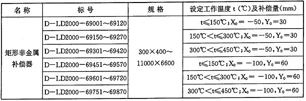 矩形非金屬補(bǔ)償器根據(jù)不同的工作溫度和補(bǔ)償量進(jìn)行分類,編目如下: